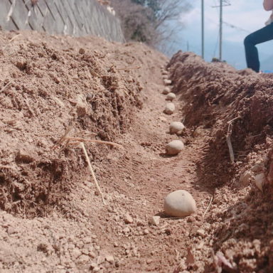 こんにゃくは昔から手作りが盛んな遠山郷。コンニャクイモの皮をむいてコトコト。型にはめてこんにゃくを作ります。手作りのこんにゃくの味を知れば他は食べられない、ぷるんと滑らか刺身で食べるのがイチオシです!